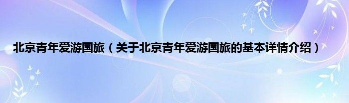 本文关于北京青年爱游国旅的基本详情介绍就讲解完毕,希望对大家有所帮助。