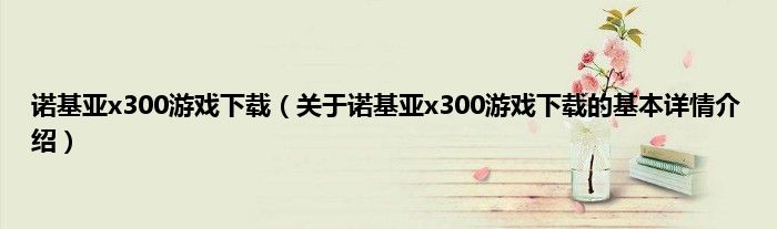 本文关于诺基亚x300游戏下载的基本详情介绍就讲解完毕,希望对大家有所帮助。