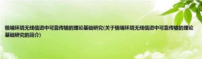 本文关于极端环境无线信道中可靠传输的理论基础研究的简介就讲解完毕,希望对大家有所帮助。