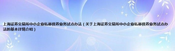 本文关于上海证券交易所中小企业私募债券业务试点办法的基本详情介绍就讲解完毕,希望对大家有所帮助。
