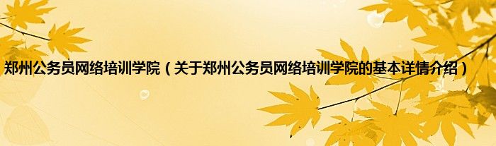 本文关于郑州公务员网络培训学院的基本详情介绍就讲解完毕,希望对大家有所帮助。