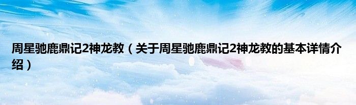 本文关于周星驰鹿鼎记2神龙教的基本详情介绍就讲解完毕,希望对大家有所帮助。