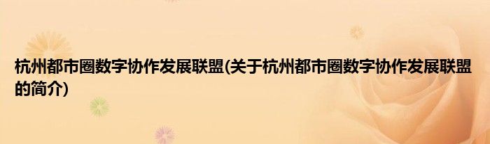 本文关于杭州都市圈数字协作发展联盟的简介就讲解完毕,希望对大家有所帮助。