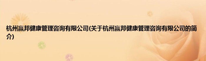 本文关于杭州赢邦健康管理咨询有限公司的简介就讲解完毕,希望对大家有所帮助。