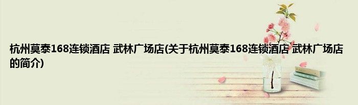 本文关于杭州莫泰168连锁酒店 武林广场店的简介就讲解完毕,希望对大家有所帮助。