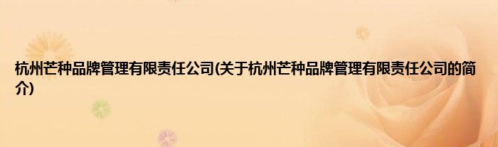 大家好,杭州芒种品牌管理有限责任公司,关于杭州芒种品牌管理有限责任公司的简介很多人还不知道,现在让我们一起来看看吧!
