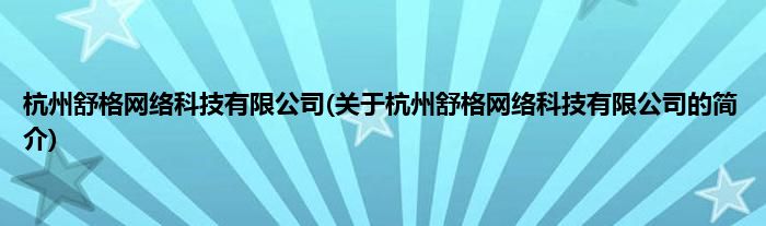 本文关于杭州舒格网络科技有限公司的简介就讲解完毕,希望对大家有所帮助。