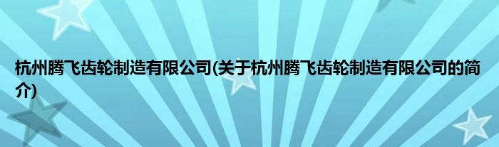 本文关于杭州腾飞齿轮制造有限公司的简介就讲解完毕,希望对大家有所帮助。