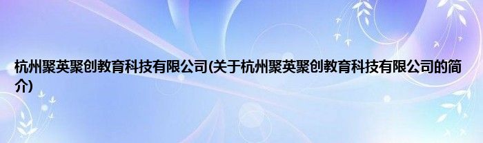 本文关于杭州聚英聚创教育科技有限公司的简介就讲解完毕,希望对大家有所帮助。