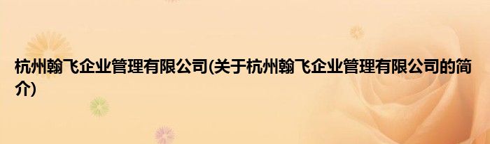 本文关于杭州翰飞企业管理有限公司的简介就讲解完毕,希望对大家有所帮助。