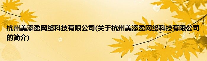 本文关于杭州美添盈网络科技有限公司的简介就讲解完毕,希望对大家有所帮助。