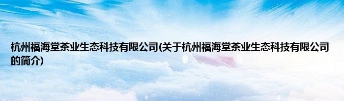 本文关于杭州福海堂茶业生态科技有限公司的简介就讲解完毕,希望对大家有所帮助。
