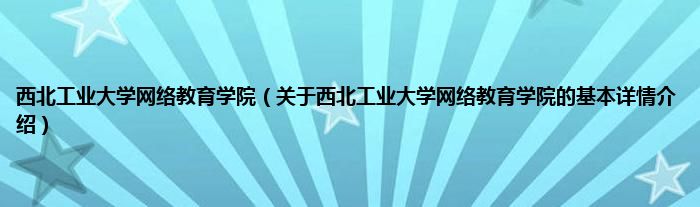 西北工业大学网络教育学院(关于西北工业大学网络教育学院的基本详情介绍)