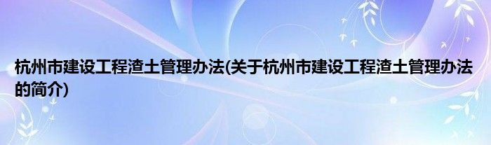 大家好,杭州市建设工程渣土管理办法,关于杭州市建设工程渣土管理办法的简介很多人还不知道,现在让我们一起来看看吧!