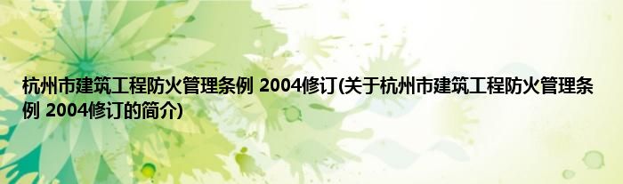 1、 《杭州市建筑工程防火管理条例(2004修订)》是浙江省杭州市于2004年7月30日发布的条例。