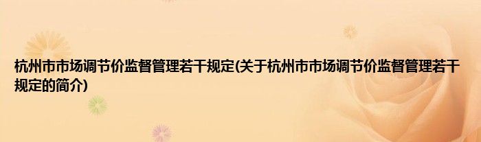 大家好,杭州市市场调节价监督管理若干规定,关于杭州市市场调节价监督管理若干规定的简介很多人还不知道,现在让我们一起来看看吧!