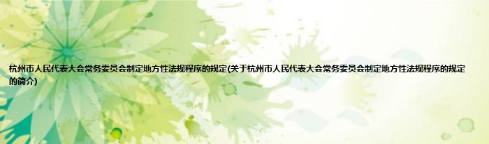 大家好,杭州市人民代表大会常务委员会制定地方性法规程序的规定,关于杭州市人民代表大会常务委员会制定地方性法规程序的规定的简介很多人还不知道,现在让我们一起来看看吧!