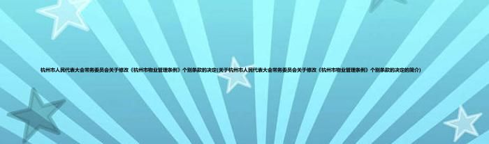 本文关于杭州市人民代表大会常务委员会关于修改《杭州市物业管理条例》个别条款的决定的简介就讲解完毕,希望对大家有所帮助。