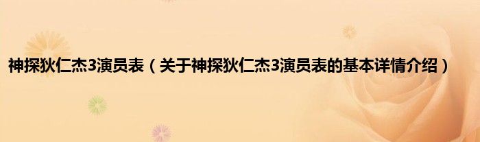 本文关于神探狄仁杰3演员表的基本详情介绍就讲解完毕,希望对大家有所帮助。