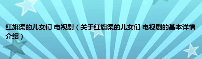 本文关于红旗渠的儿女们 电视剧的基本详情介绍就讲解完毕,希望对大家有所帮助。