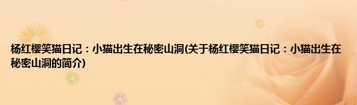 大家好,杨红樱笑猫日记:小猫出生在秘密山洞,关于杨红樱笑猫日记:小猫出生在秘密山洞的简介很多人还不知道,现在让我们一起来看看吧!