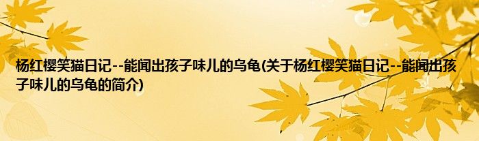 1、 《杨红樱笑猫日记--能闻出孩子味儿的乌龟》是2018年7月1日明天出版社出版的图书,作者是杨红樱。