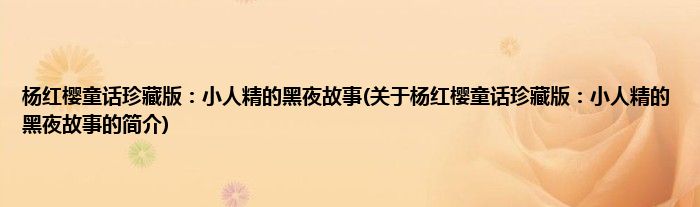 本文关于杨红樱童话珍藏版:小人精的黑夜故事的简介就讲解完毕,希望对大家有所帮助。