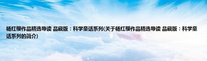 本文关于杨红樱作品精选导读 品藏版:科学童话系列的简介就讲解完毕,希望对大家有所帮助。