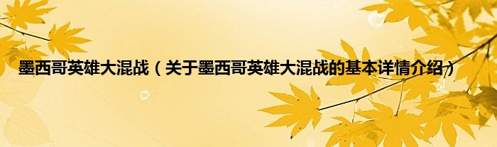 本文关于墨西哥英雄大混战的基本详情介绍就讲解完毕,希望对大家有所帮助。