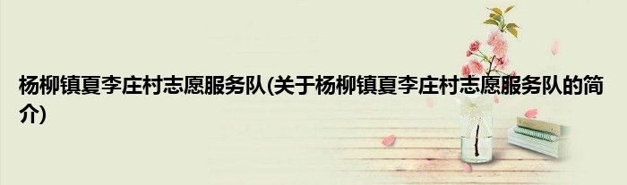 本文关于杨柳镇夏李庄村志愿服务队的简介就讲解完毕,希望对大家有所帮助。