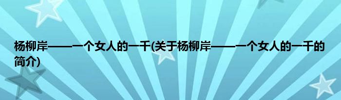 大家好,杨柳岸——一个女人的一千,关于杨柳岸——一个女人的一千的简介很多人还不知道,现在让我们一起来看看吧!