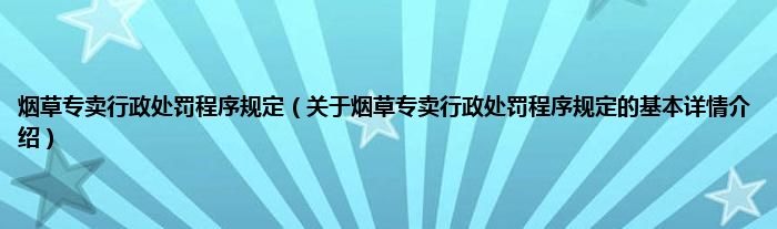 本文关于烟草专卖行政处罚程序规定的基本详情介绍就讲解完毕,希望对大家有所帮助。