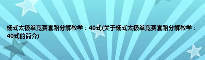 杨式太极拳竞赛套路分解教学:40式(关于杨式太极拳竞赛套路分解教学:40式的简介)