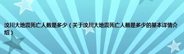 本文关于汶川大地震死亡人数是多少的基本详情介绍就讲解完毕,希望对大家有所帮助。