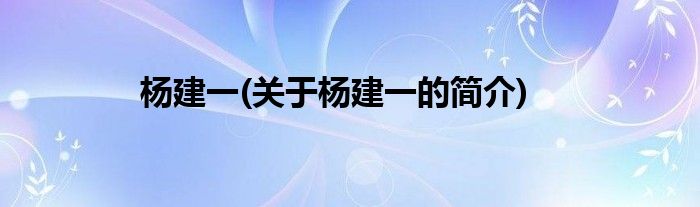 大家好,杨建一,关于杨建一的简介很多人还不知道,现在让我们一起来看看吧!