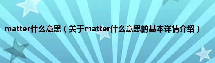 本文关于matter什么意思的基本详情介绍就讲解完毕,希望对大家有所帮助。
