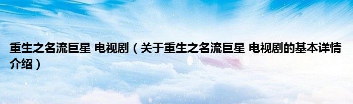 本文关于重生之名流巨星 电视剧的基本详情介绍就讲解完毕,希望对大家有所帮助。