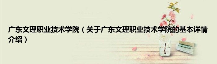 本文关于广东文理职业技术学院的基本详情介绍就讲解完毕,希望对大家有所帮助。