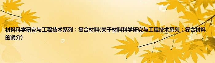 大家好,材料科学研究与工程技术系列:复合材料,关于材料科学研究与工程技术系列:复合材料的简介很多人还不知道,现在让我们一起来看看吧!