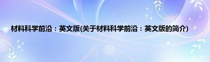 本文关于材料科学前沿:英文版的简介就讲解完毕,希望对大家有所帮助。