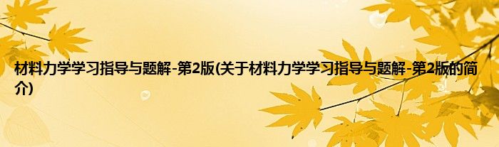 本文关于材料力学学习指导与题解-第2版的简介就讲解完毕,希望对大家有所帮助。