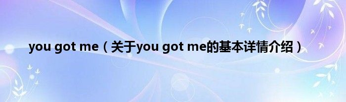 本文关于you got me的基本详情介绍就讲解完毕,希望对大家有所帮助。