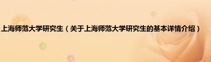 本文关于上海师范大学研究生的基本详情介绍就讲解完毕,希望对大家有所帮助。