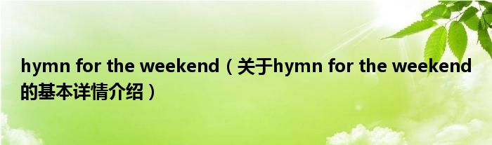 本文关于hymn for the weekend的基本详情介绍就讲解完毕,希望对大家有所帮助。