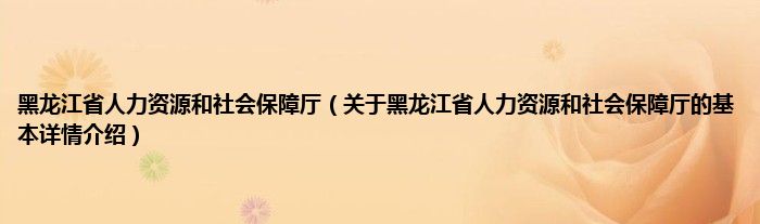 本文关于黑龙江省人力资源和社会保障厅的基本详情介绍就讲解完毕,希望对大家有所帮助。