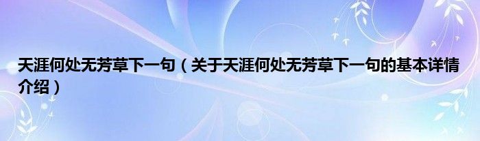 本文关于天涯何处无芳草下一句的基本详情介绍就讲解完毕,希望对大家有所帮助。
