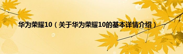 本文关于华为荣耀10的基本详情介绍就讲解完毕,希望对大家有所帮助。