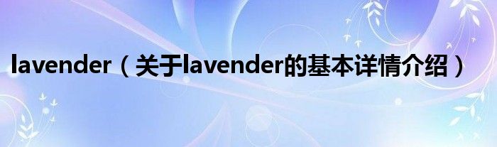 本文关于lavender的基本详情介绍就讲解完毕,希望对大家有所帮助。