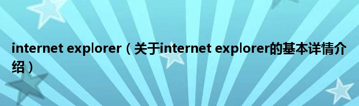 本文关于internet explorer的基本详情介绍就讲解完毕,希望对大家有所帮助。