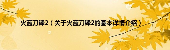 本文关于火蓝刀锋2的基本详情介绍就讲解完毕,希望对大家有所帮助。